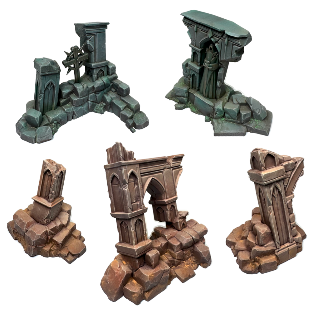 The Physical Terrain boxed set includes the 3D printed pieces below: